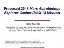 Proposed 2018 Mars Astrobiology Explorer-Cacher MAX-C Mission Sept