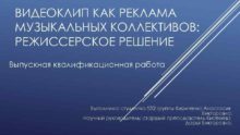 ВИДЕОКЛИП КАК РЕКЛАМА МУЗЫКАЛЬНЫХ КОЛЛЕКТИВОВ РЕЖИССЕРСКОЕ РЕШЕНИЕ Выпускная
