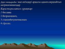 Дәріс тақырыбы мал өнiмдерi арқылы адамға жұқпайтын антропозооноздар