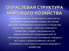 ОТРАСЛЕВАЯ СТРУКТУРА МИРОВОГО ХОЗЯЙСТВА Ускорение научно-технического прогресса постоянно