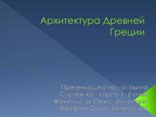 Архитектура Древней Греции Презентацию подготовила Студентка I курса