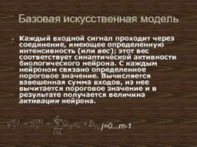 Базовая искусственная модель Каждый входной сигнал проходит через