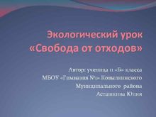 Экологический урок Свобода от отходов Автор ученица 11