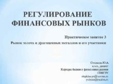 РЕГУЛИРОВАНИЕ ФИНАНСОВЫХ РЫНКОВ Практическое занятие 3 Рынок золота