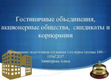 Гостиничные объединения акционерные общества синдикаты и корпорации Презентацию