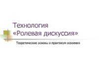 Технология Ролевая дискуссия Теоретические основы и практикум освоения