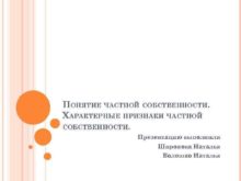 ПОНЯТИЕ ЧАСТНОЙ СОБСТВЕННОСТИ ХАРАКТЕРНЫЕ ПРИЗНАКИ ЧАСТНОЙ СОБСТВЕННОСТИ Презентацию