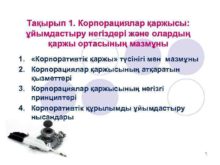 Тақырып 1 Корпорациялар қаржысы ұйымдастыру негіздері және олардың