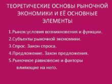 ТЕОРЕТИЧЕСКИЕ ОСНОВЫ РЫНОЧНОЙ ЭКОНОМИКИ И ЕЁ ОСНОВНЫЕ ЭЛЕМЕНТЫ