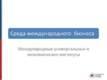 Среда международного бизнеса Международные универсальные и экономические институты