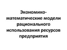Экономикоматематические модели рационального использования ресурсов предприятия 1