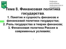Кафедра экономики информатики и математики Тема 8 Финансовая