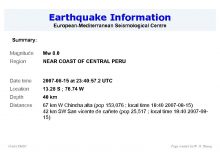 Earthquake Information European-Mediterranean Seismological Centre Summary Magnitude Mw