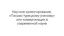 Научное ориентирование Письмо турецкому ученому или коммуникации в
