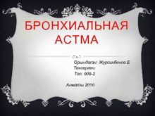 БРОНХИАЛЬНАЯ АСТМА Орындаған Журсинбеков Е Тексерген Топ 608