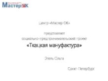 Центр Мастер ОК представляет социально-предпринимательский проект Ткацкая мануфактура