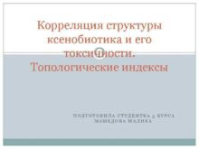 Корреляция структуры ксенобиотика и его токсичности Топологические индексы