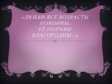 ЛЮБВИ ВСЕ ВОЗРАСТЫ ПОКОРНЫ ЕЁ ПОРЫВЫ БЛАГОРОДНЫ