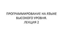 ПРОГРАММИРОВАНИЕ НА ЯЗЫКЕ ВЫСОКОГО УРОВНЯ ЛЕКЦИЯ 2