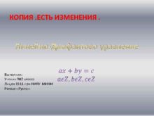 КОПИЯ ЕСТЬ ИЗМЕНЕНИЯ Линейно-Диофантово уравнение Выполнил Ученик 9