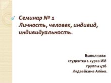 Семинар 1 Личность человек индивидуальность Выполнила студентка
