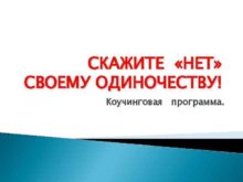 СКАЖИТЕ НЕТ СВОЕМУ ОДИНОЧЕСТВУ Коучинговая программа ПРОГРАММА