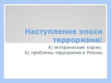 Наступление эпохи терроризма А исторические корни Б проблемы