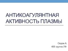 АНТИКОАГУЛЯНТНАЯ АКТИВНОСТЬ ПЛАЗМЫ Седов А 405 группа ЛФ