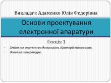 Викладач Адаменко Юлія Федорівна Основи проектування електронної апаратури