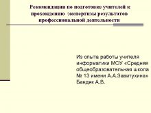 Рекомендации по подготовке учителей к прохождению экспертизы результатов