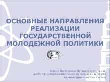 ОСНОВНЫЕ НАПРАВЛЕНИЯ РЕАЛИЗАЦИИ ГОСУДАРСТВЕННОЙ МОЛОДЕЖНОЙ ПОЛИТИКИ Лариса Валерьевна