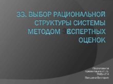 33 ВЫБОР РАЦИОНАЛЬНОЙ СТРУКТУРЫ СИСТЕМЫ МЕТОДОМ ЭКСПЕРТНЫХ ОЦЕНОК