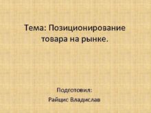 Тема Позиционирование товара на рынке Подготовил Райцис Владислав