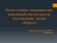 Расчет технико экономических показателей участка цеха по изготовлению детали