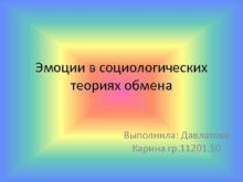 Эмоции в социологических теориях обмена Выполнила Давлатова Карина
