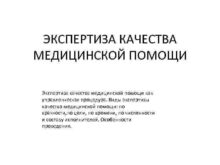 ЭКСПЕРТИЗА КАЧЕСТВА МЕДИЦИНСКОЙ ПОМОЩИ Экспертиза качества медицинской помощи