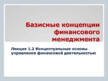 Базисные концепции финансового менеджмента Лекция 1 2 Концептуальные