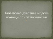 Био-психо-духовная модель помощи при зависимостях Психотерапевтическая медицинская