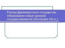 Распад Древнерусского государства Образование новых центров государственности XII-начало