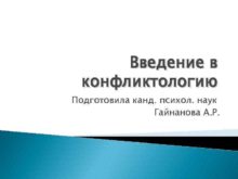 Введение в конфликтологию Подготовила канд психол наук Гайнанова