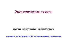 Экономическая теория ЛИГАЙ КОНСТАНТИН МИХАЙЛОВИЧ КАФЕДРА ЭКОНОМИЧЕСКОЙ ТЕОРИИ