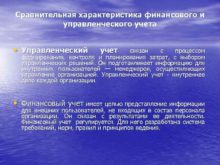 Сравнительная характеристика финансового и управленческого учета Управленческий