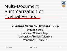 Multi-Document Summarization of Evaluative Text Giuseppe Carenini Raymond