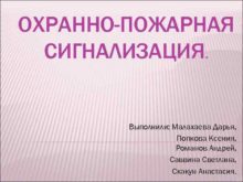 ОХРАННО-ПОЖАРНАЯ СИГНАЛИЗАЦИЯ Выполнили Малахаева Дарья Попкова Ксения Романов