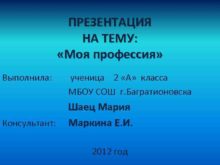 ПРЕЗЕНТАЦИЯ НА ТЕМУ Моя профессия Выполнила ученица 2