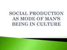 SOCIAL PRODUCTION AS MODE OF MAN S BEING IN