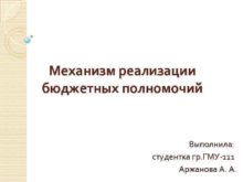 Механизм реализации бюджетных полномочий Выполнила студентка гр ГМУ-111