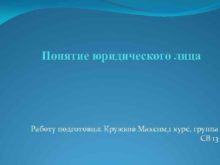 Понятие юридического лица Работу подготовил Кружков Максим 1