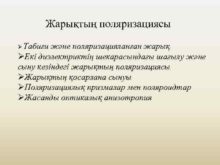 Жарықтың поляризациясы Ø Табиғи және поляризацияланған жарық ØЕкі