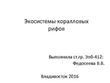 Экосистемы коралловых рифов Выполнила ст гр Эпб-412 Федосеева